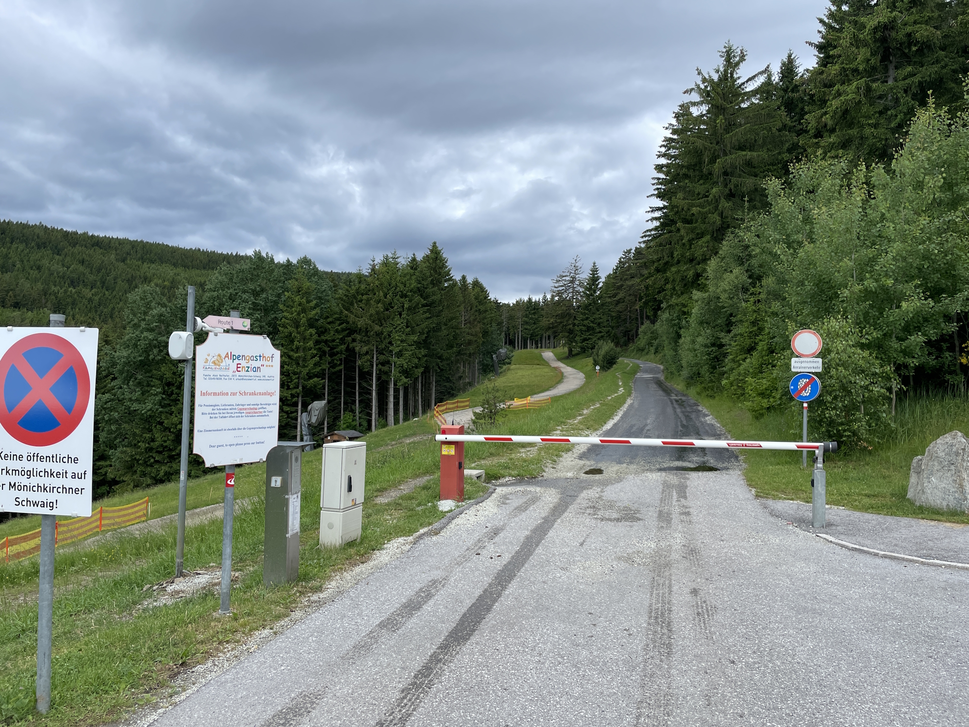 08:05 At the closed Kampsteiner Schwaig (SummitLynx checkpoint, now you have completed the Schwaig zu Schwaig trophy!), first turn left and head towards the building. Then turn right and follow the trail eastwards towards Kampstein.
