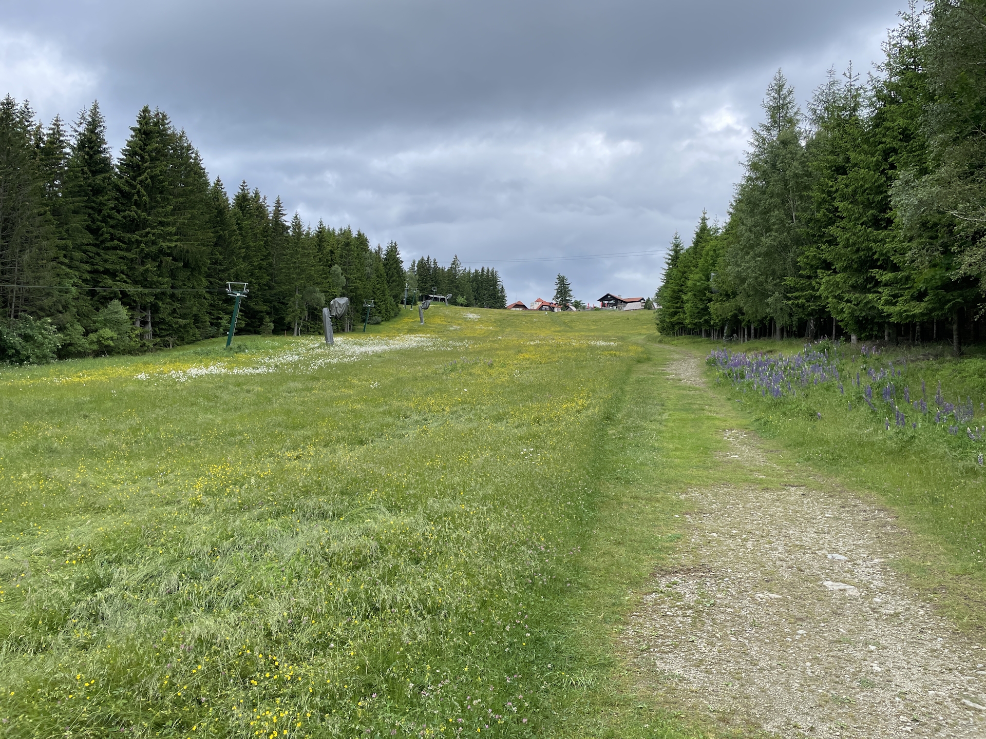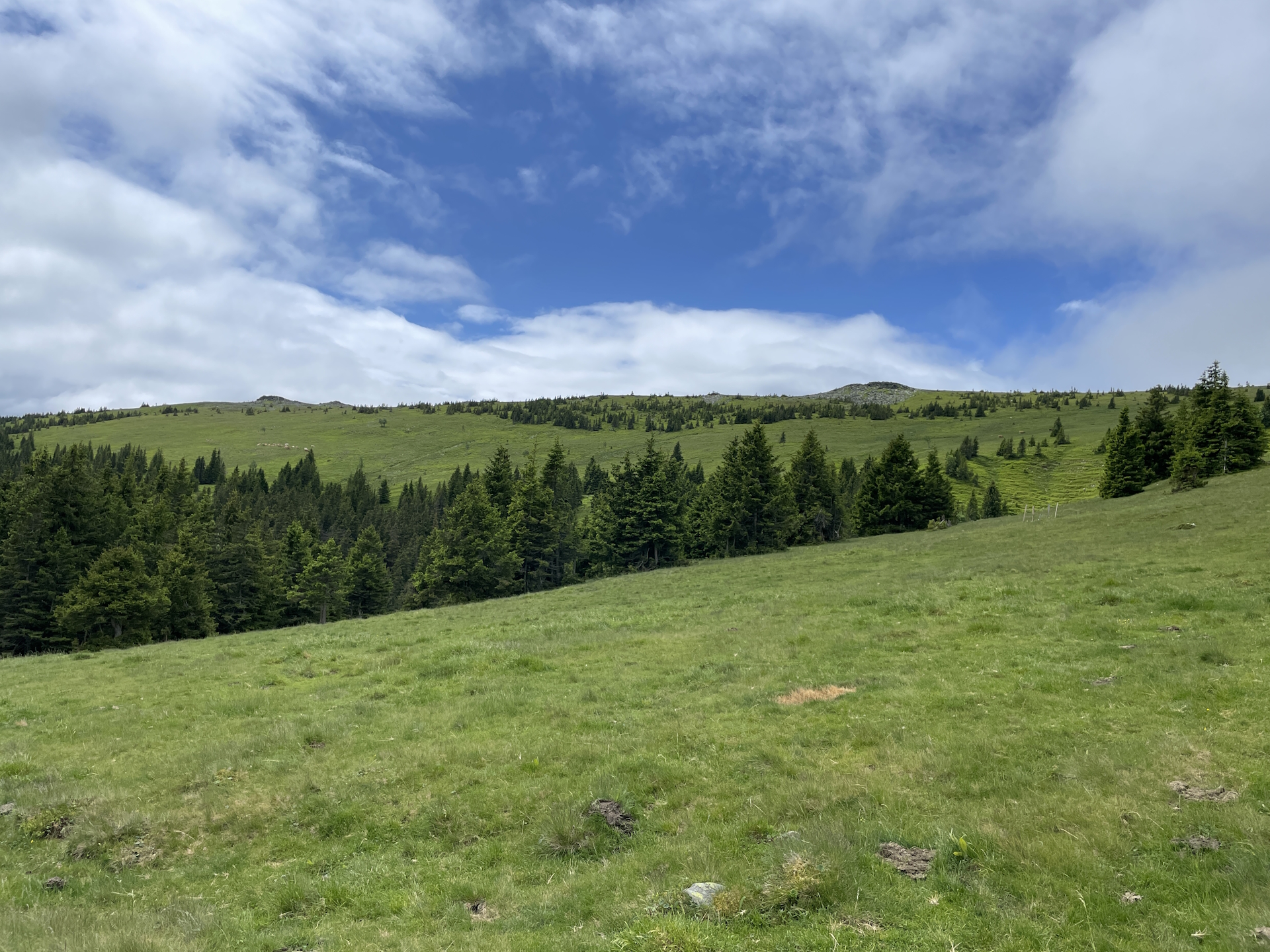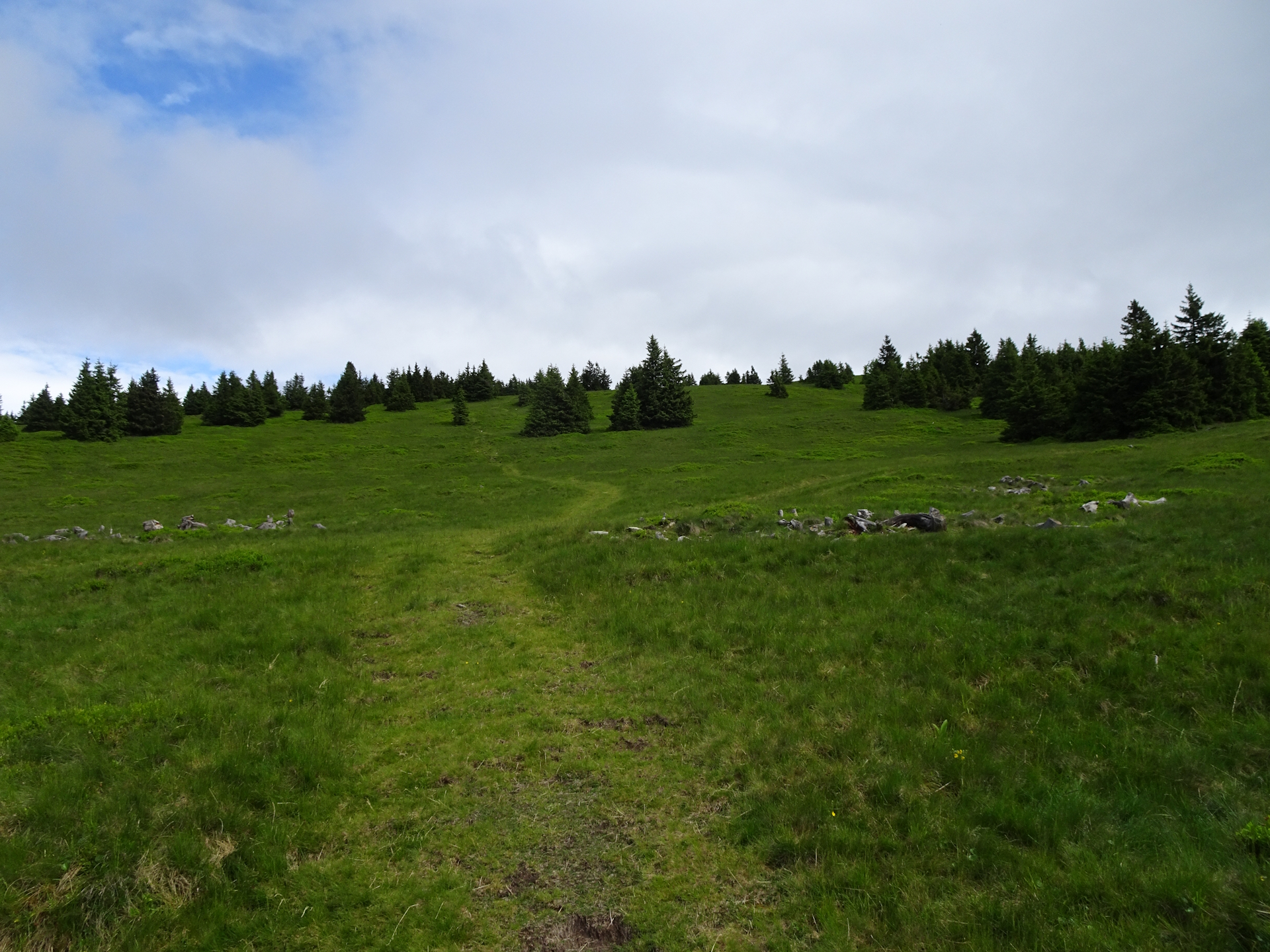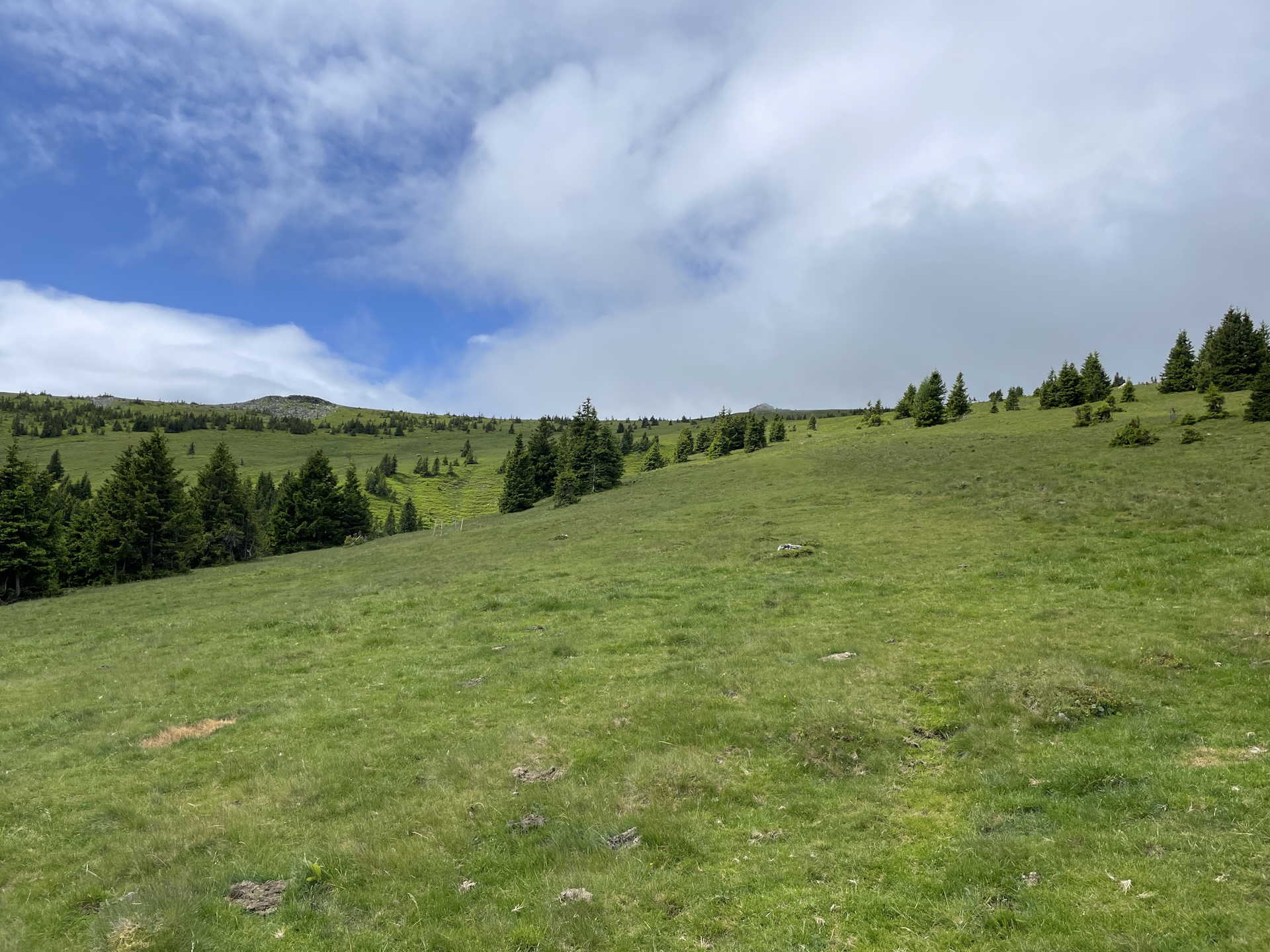 06:55 Bypass the summit of Arabichl (SummitLynx checkpoint) and continue following the trail eastwards first through the alpine pasture into the forest.