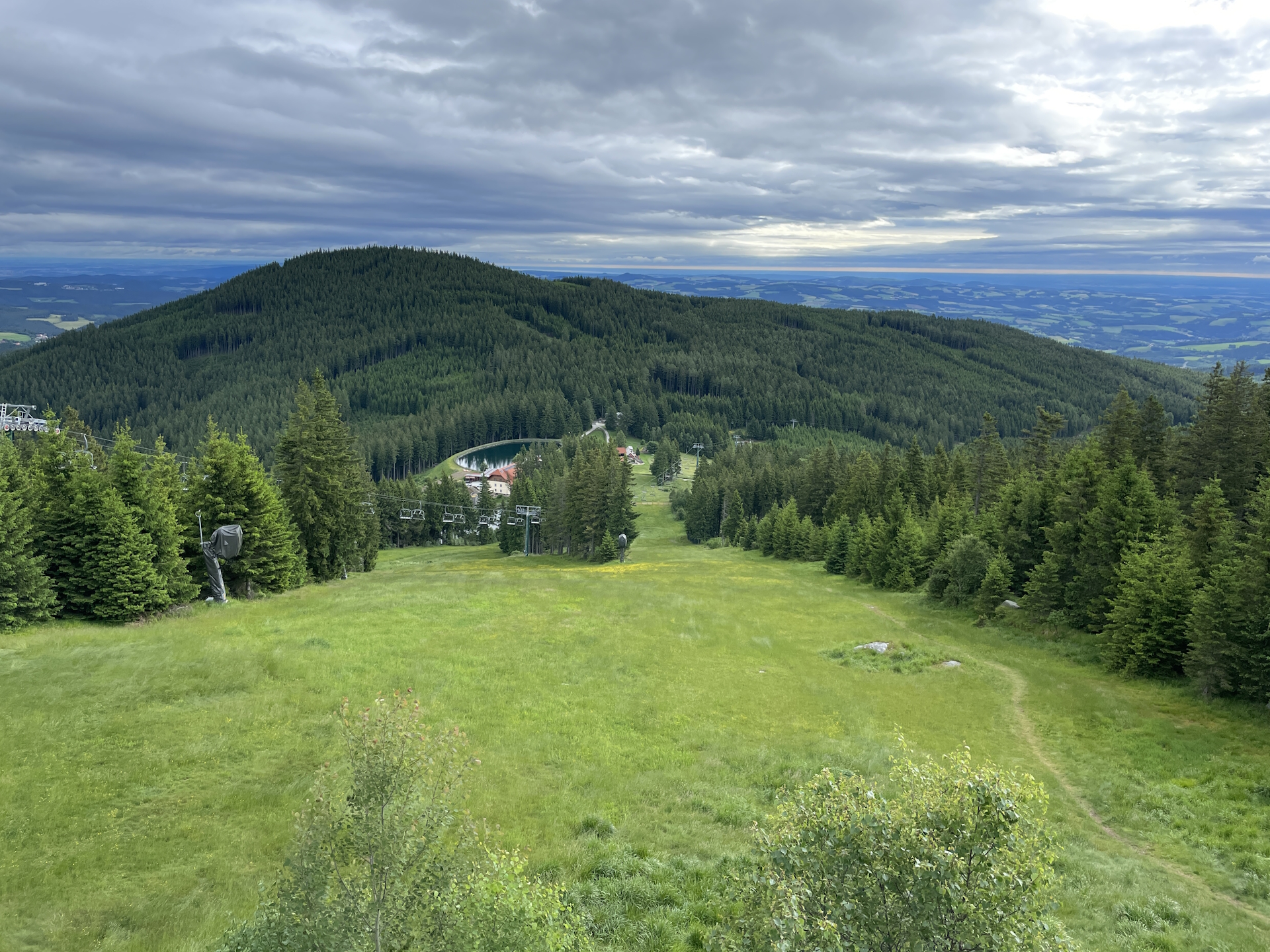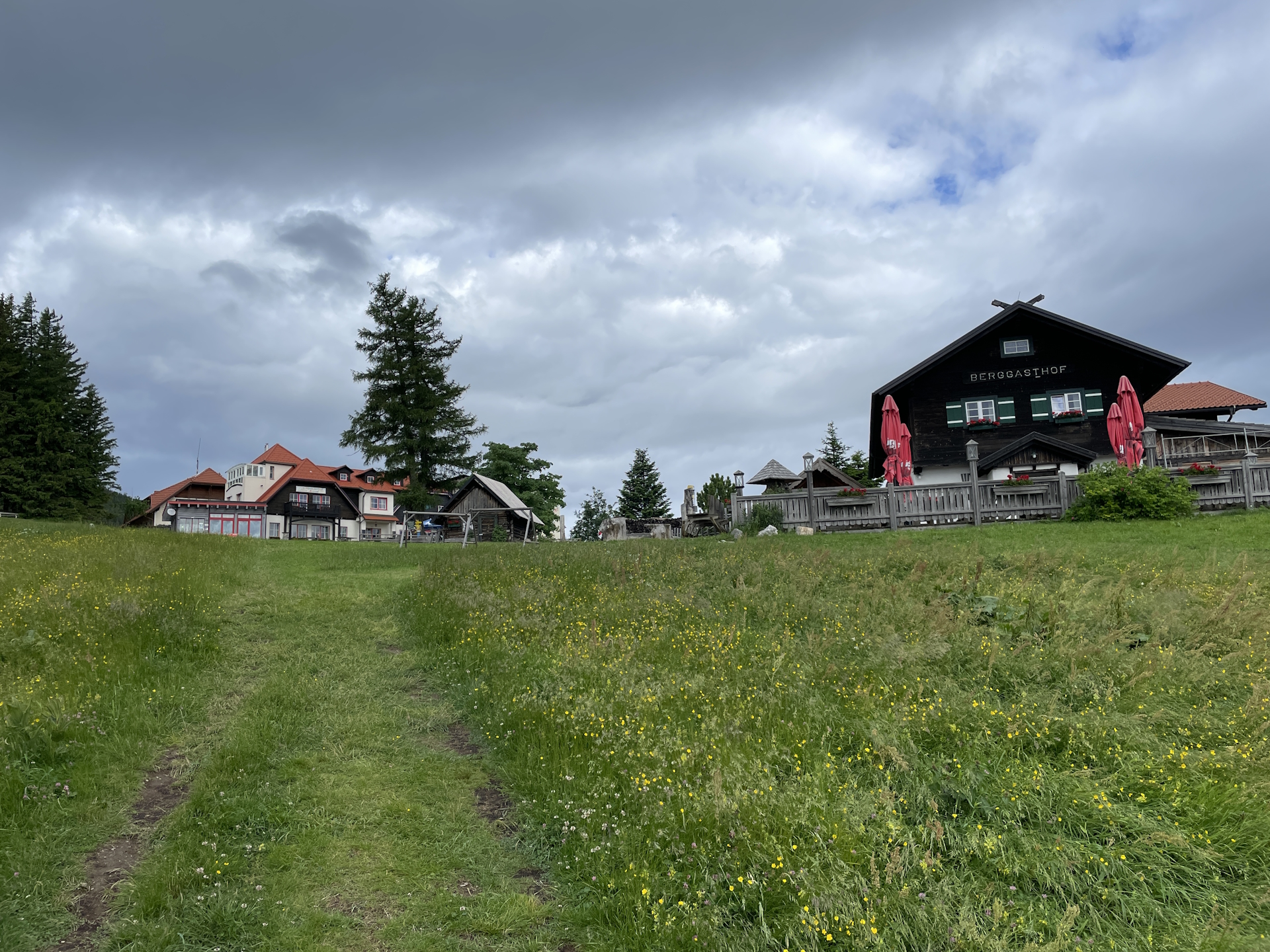 00:35 Bypass Berggasthof Mönichkirchner Schwaig (SummitLynx checkpoint) and keep slightly left. Then follow the marked trail via the steep ski slope up to the already visible viewing platform.
