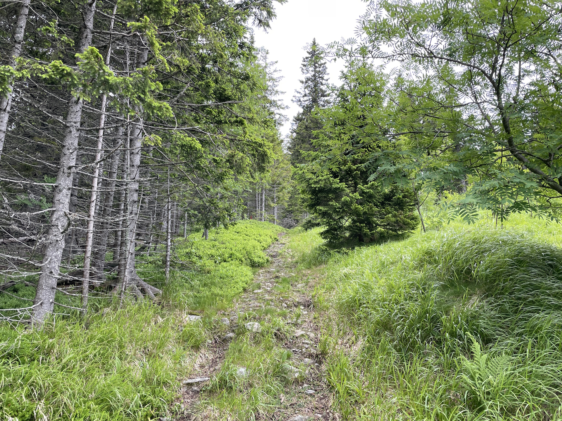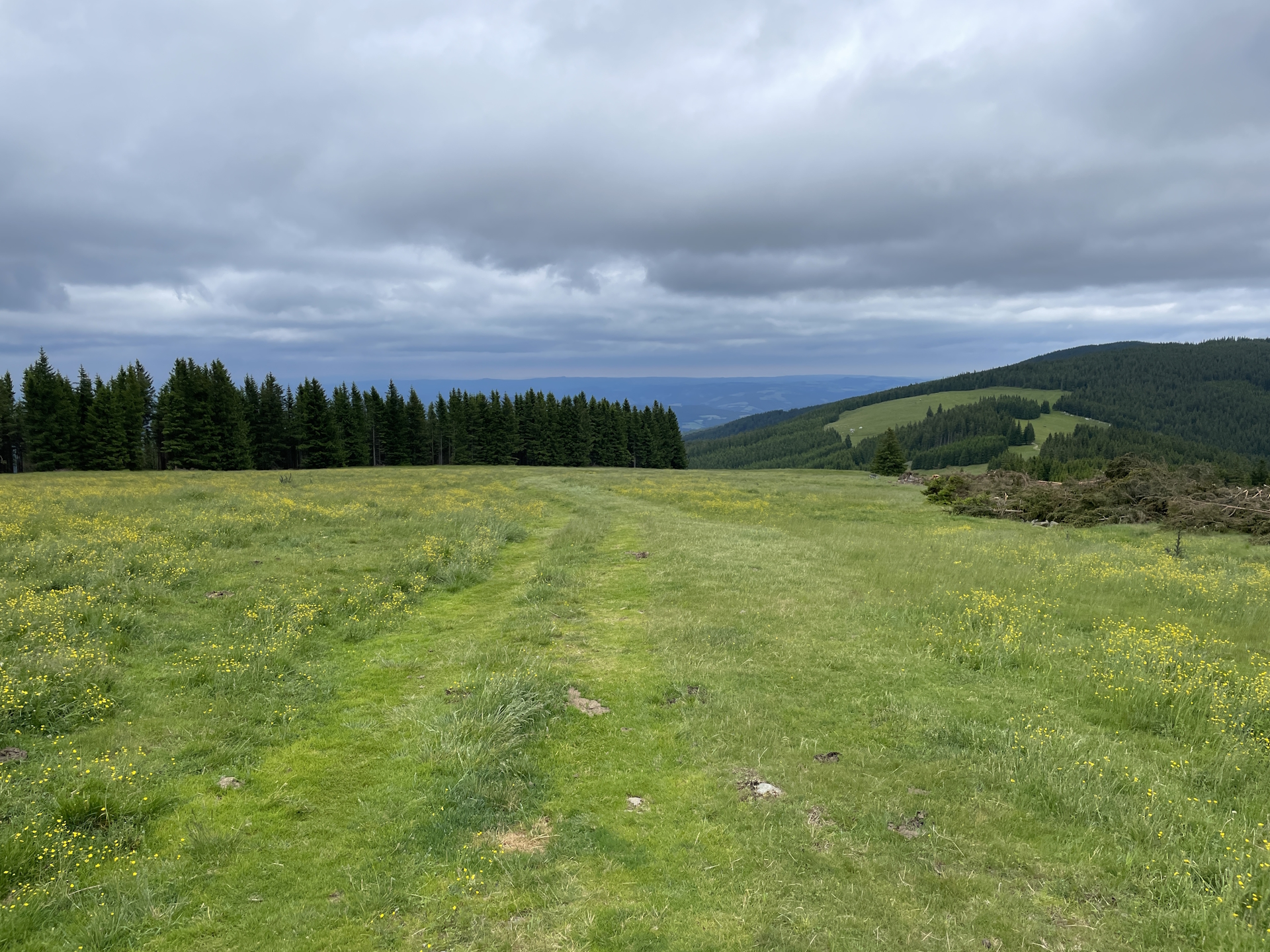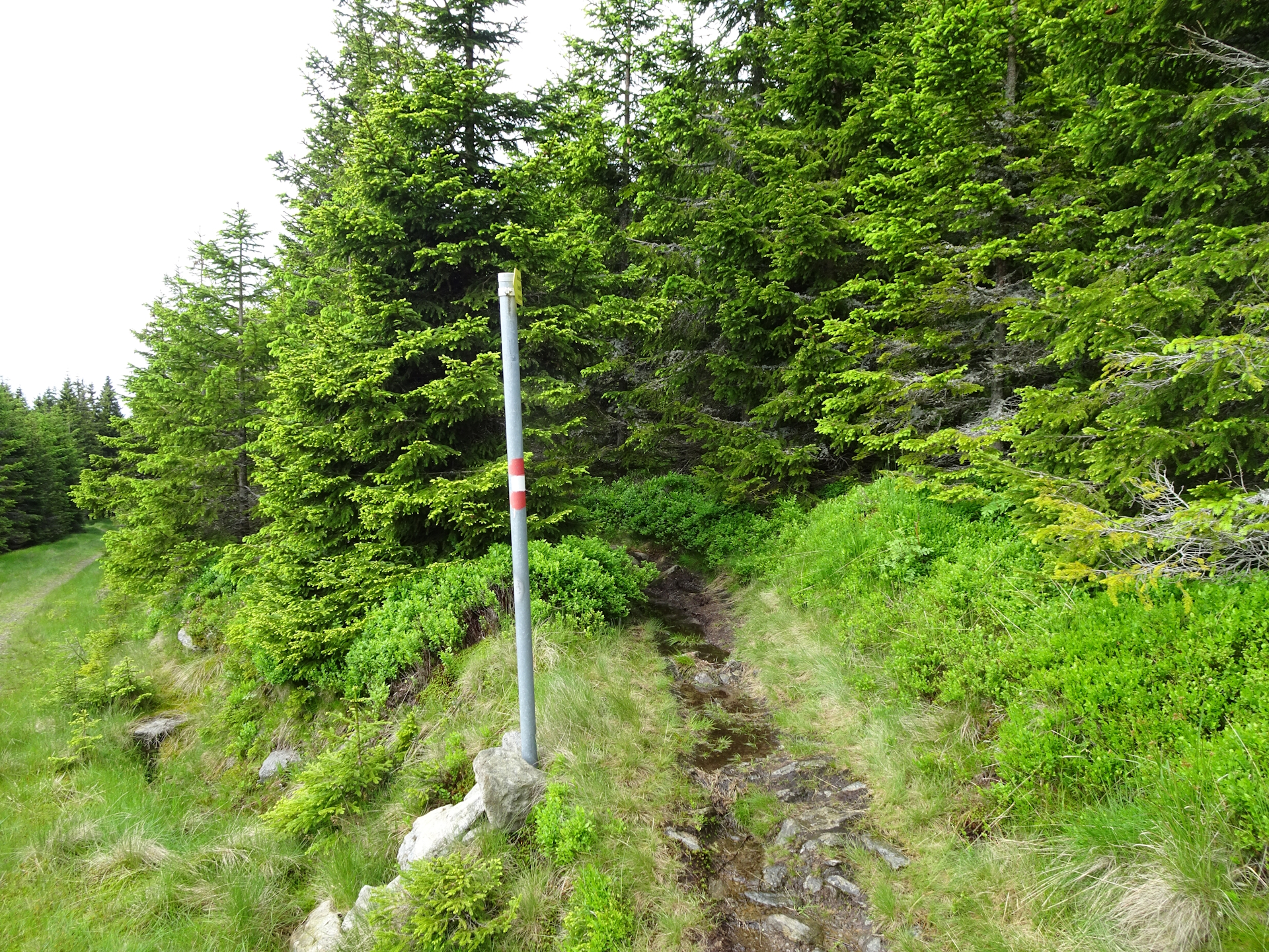 04:55 At the top of Schöberlriegel (SummitLynx checkpoint), turn right and find your way through the meadow back to the official trail. Once at the trail, turn left and follow the marked trail northwards towards Dreiländereck.