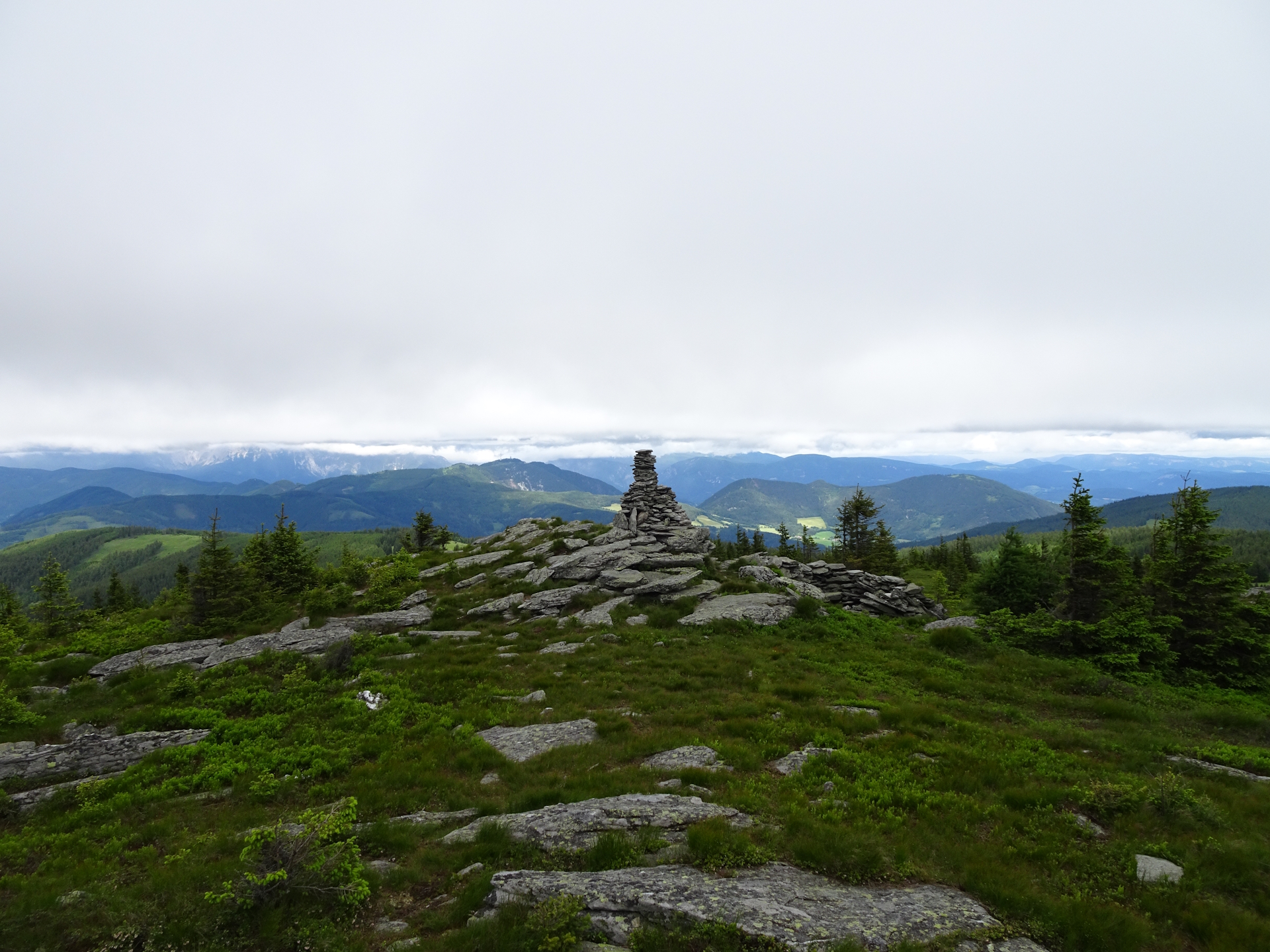 This very long tour aims to get all points for the two SummitLynx trophies Gipfelstürmer and Schwaig zu Schwaig in one go. Therefore the tour leads up to all the summits as well as bypasses all huts in this area. The tour starts at the bus station Mönichkirchen / Kirchenwirt and first follows the trail up to the ski area and then further to the Berggasthof Mönichkirchner Schwaig (1 Point for Schwaig zu Schwaig). The tour then steeply ascends up to the Hallerhaus following the ski slope and then using a relatively easy trail to the Stoa Alm. Now the tour ascends following the trail up to the Steinerne Stiege (2 Points for Gipfelstürmer) and then heads in the direction of Niederwechsel. Shortly before reaching Niederwechsel, the tour then turns left and descends down towards the Vorauer Schwaig (2 Points for Schwaig zu Schwaig). Here, the tour then turns right and follows the direct way up to the summit of Niederwechsel (3 Points for Gipfelstürmer).