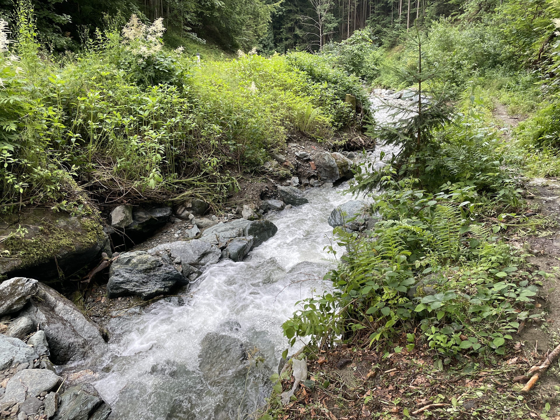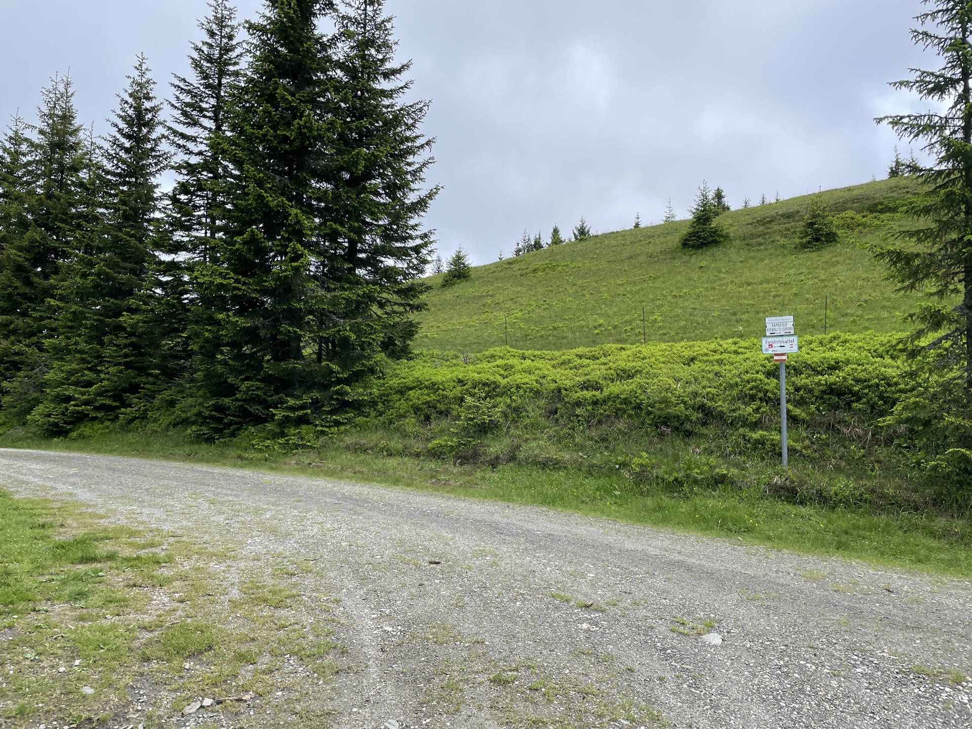 07:10 At the crossing, turn right (step over the barrier) and follow the marked trail towards Feistritzer Schwaig.