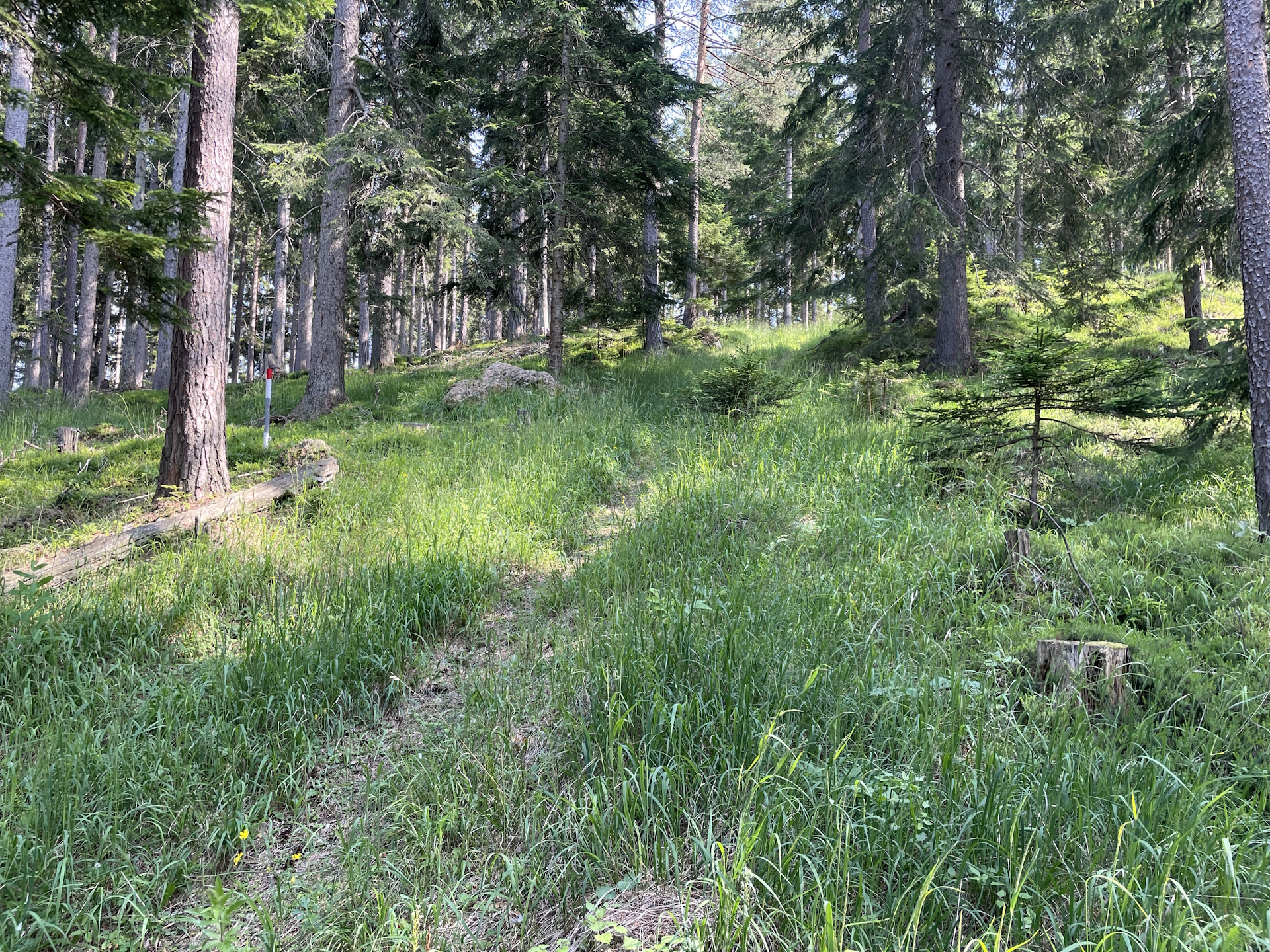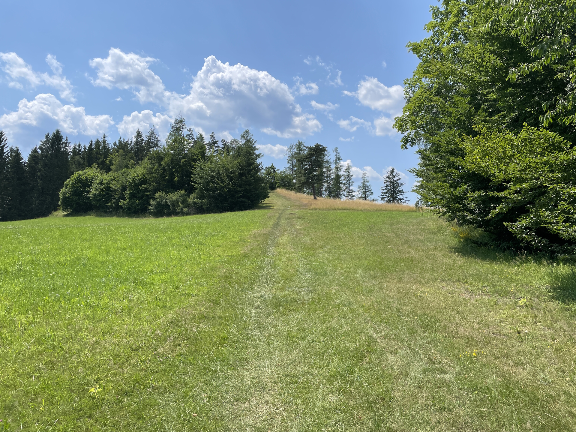 | 02:10 | At the clearance, turn right and follow the trail southwards through the meadow and later through the forest. |