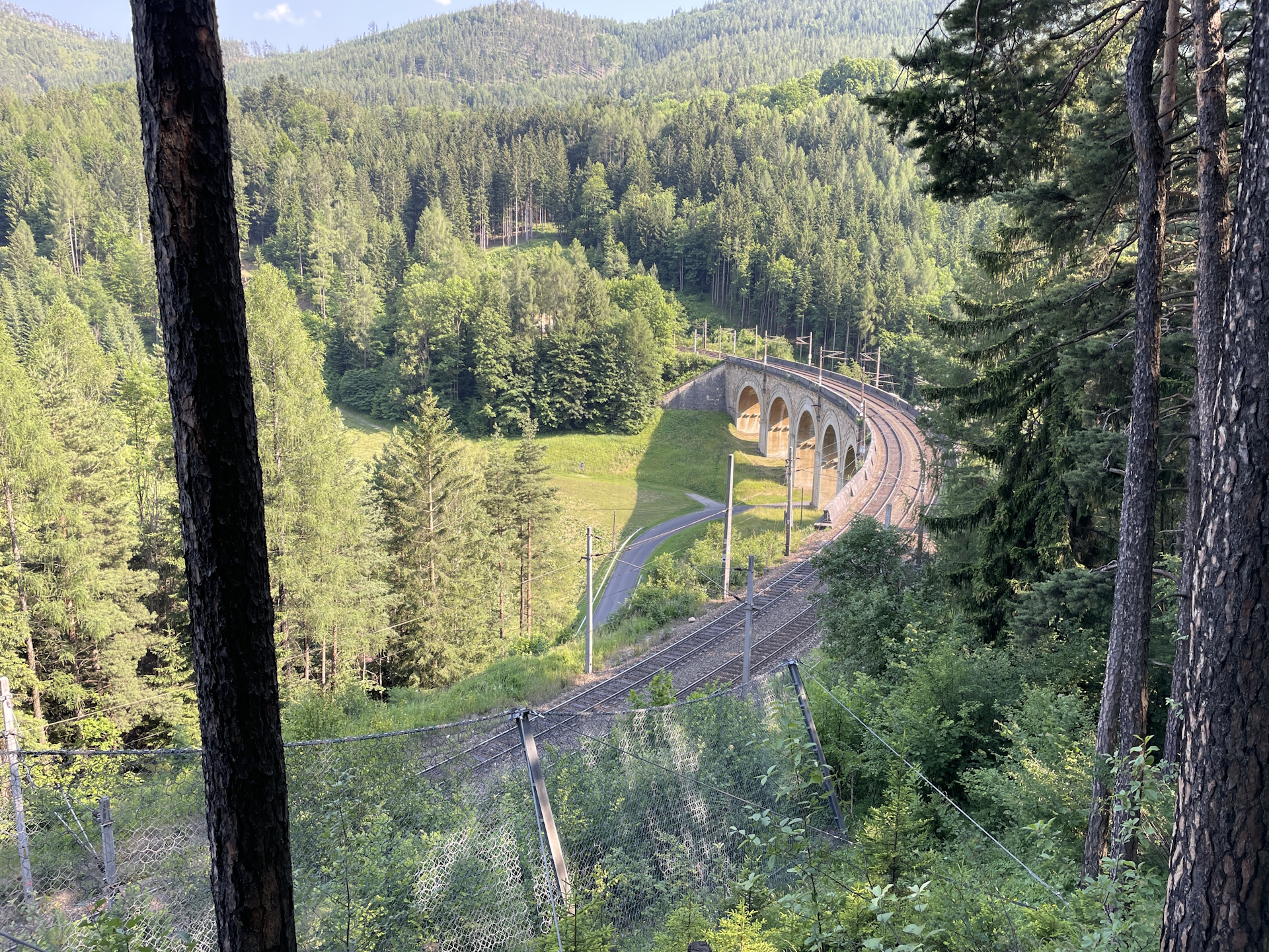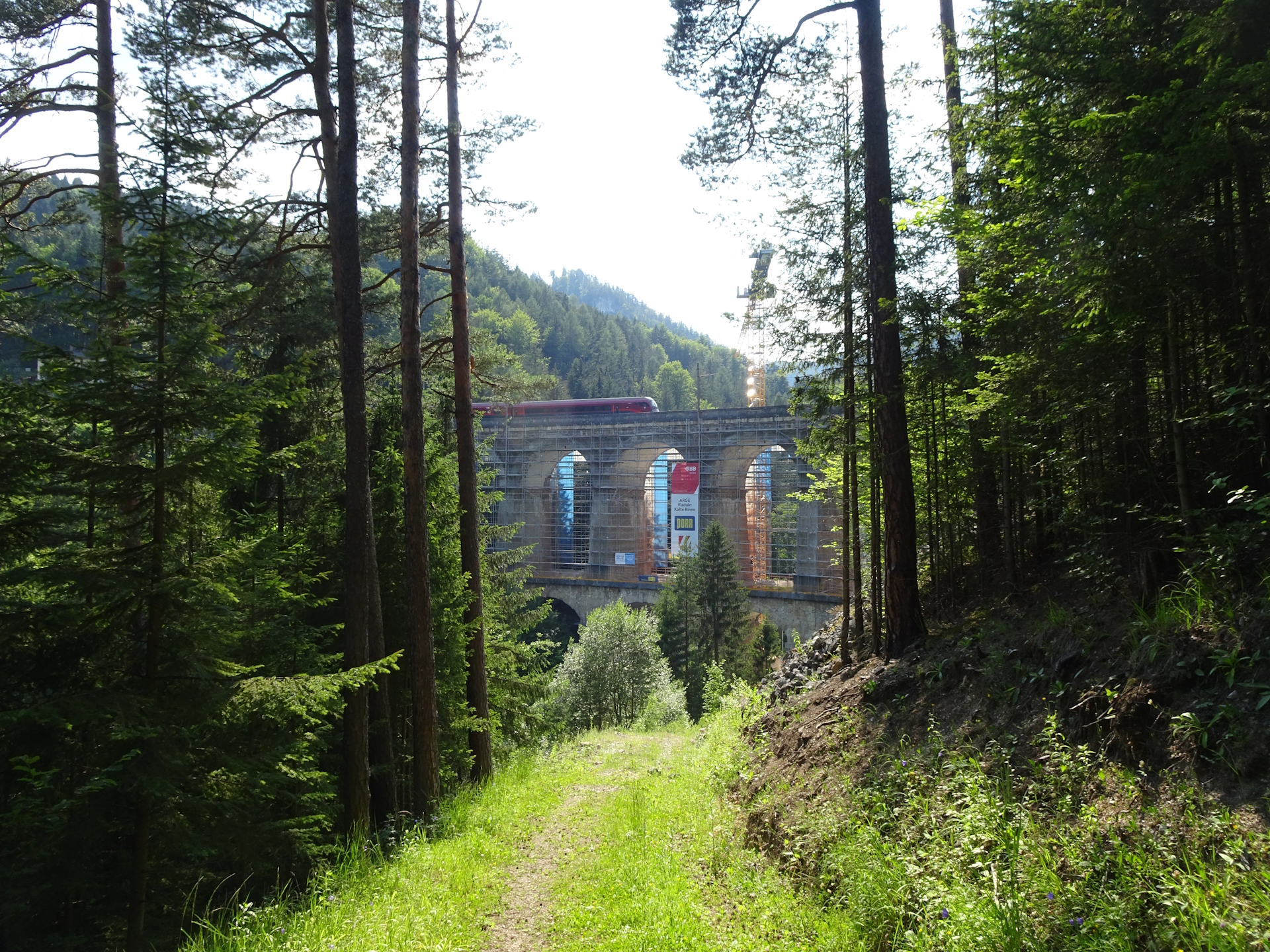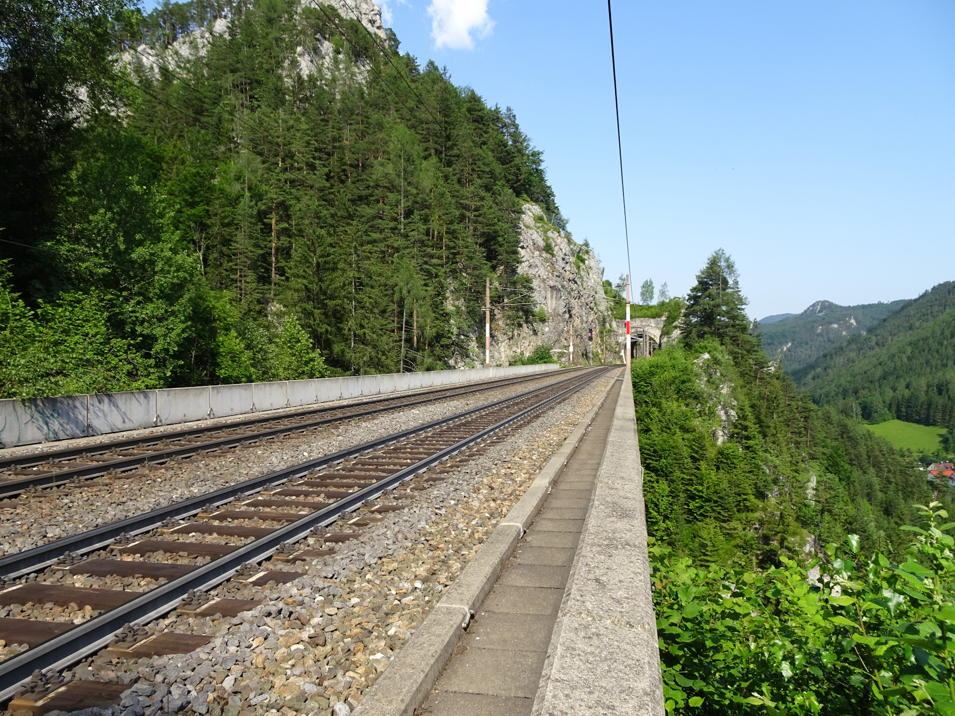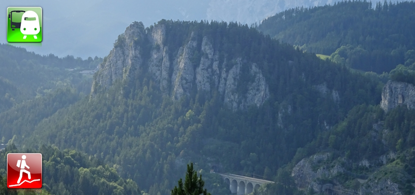 | 03:20 | Cross the railway tracks again through the viaduct and follow the street westwards for a few meters. At the first possibility, turn sharp left and follow the Bahnwanderweg towards the Ghega-Museum. |