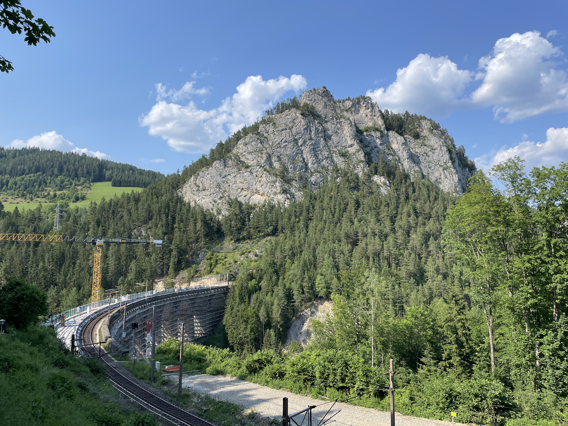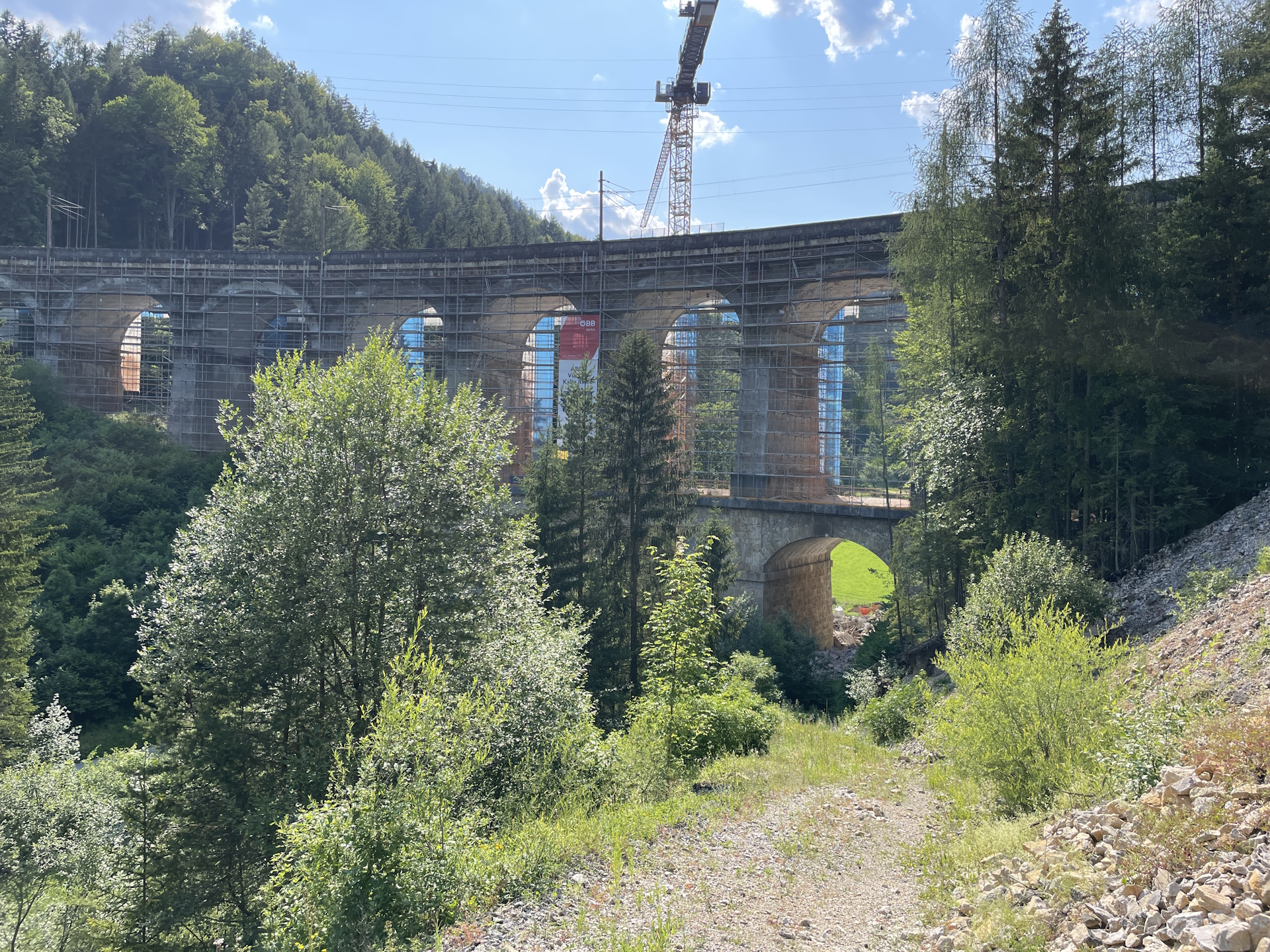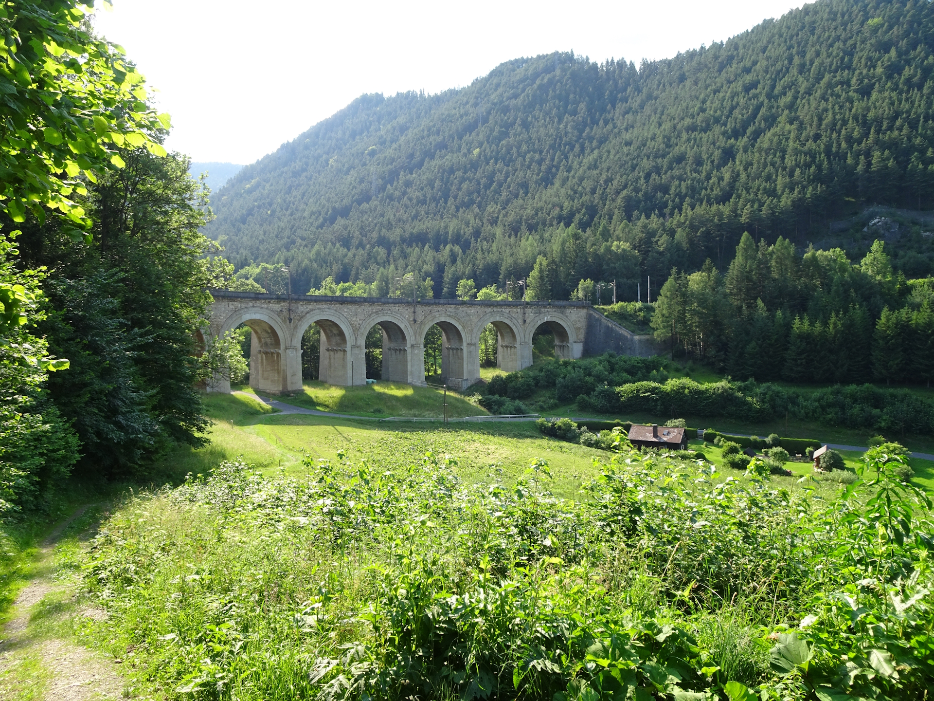 | 03:20 | Cross the railway tracks again through the viaduct and follow the street westwards for a few meters. At the first possibility, turn sharp left and follow the Bahnwanderweg towards the Ghega-Museum. |